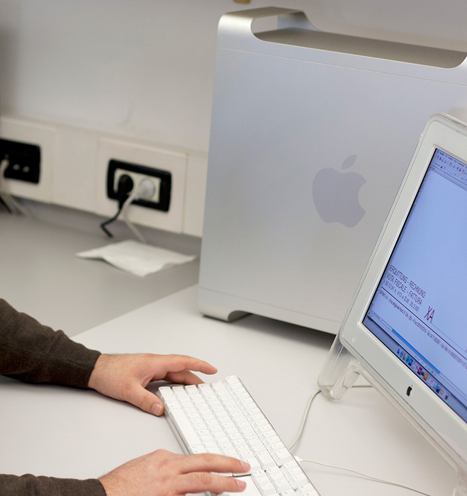 Le postazioni di lavoro dotate delle tecnologie più evolute e delle principali applicazioni grafiche consentono di elaborare proposte originali e innovative.